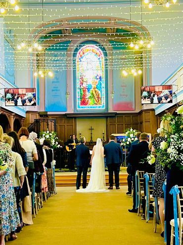 We played Video Games for the Aisle Song and a brilliant, unusual choice of Les Fleurs by Minnie Ripperton for the Exit Song which we arranged specially. Jess and Josh skipped their way back down the aisle as husband and wife and then we were on to the Drinks Reception where our upbeat pop covers proved extremely popular and everyone had a sing along and showcased their moves!