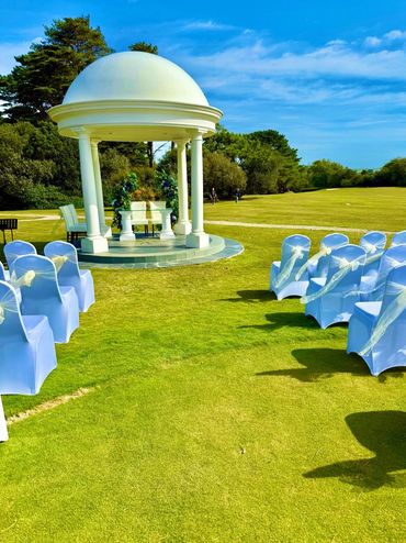 Receptions follow in the Bay View Restaurant (for the wedding breakfast) and Carlyon Suite / Clubhouse for evening festivities, all with sea views and access to terrace areas.