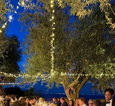 The gardens stretch across 10,000 m² over three levels, with the upper tiers featuring a pool and panoramic sea views—a natural stage for outdoor ceremonies and receptions. The property is well suited for destination weddings: it allows symbolic and Anglican-style ceremonies, and offers indoor and sheltered spaces for reception dining when weather demands, including an internal hall/salone and a covered area capable of hosting up to around 200 people. For more intimate moments, ceremonies and dining for smaller parties (40 guests) can be accommodated inside its dining rooms.