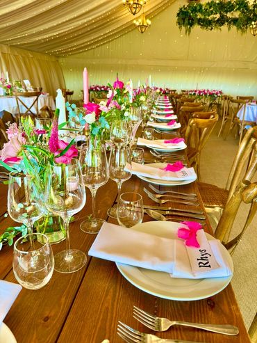Another beautiful wedding today for Alice and Chris at Crockwell Farm in Daventry! The weather held up and we used our battery pack for a colourful and vibrant outside ceremony followed by a stylish drinks reception! Alice entered to the beautiful aisle song, Video Games which is always a tear jerker and sets a wonderful atmosphere, followed by 3 register songs, God Only Knows, I can’t help falling in love and You’ll Never Walk Alone. They took their first steps as husband and wife to the strains of Are you ready for love before we relocated to the terrace for the Cocktails and Canapés where our brief was ABBA, Elton Jorn and Elvis. We had a great time at this lovely wedding and wish Alice and Chris every happiness for their future together!