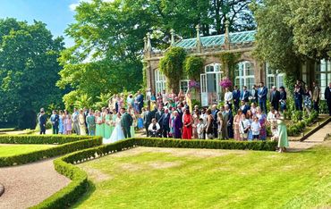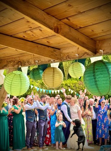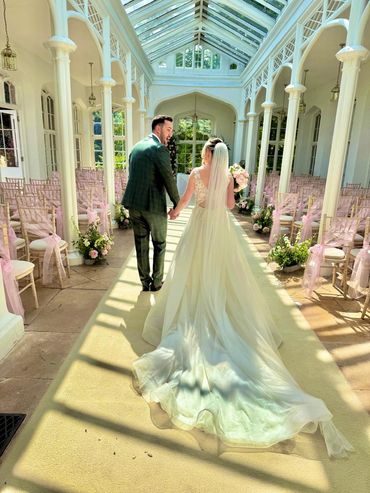A fabulous return to one of our favourite venues, St. Audrie's in North Devon, for the wedding of Evanne and Jamie. What a wonderful day! Evanne looked absolutely stunning walking in to a beautiful rendition of Happily Ever After by Brent Morgan. Her fairytale dress looked gorgeous and we loved the outfit even more when we realised she had her crocs on underneath! The Orangery looked fantastic, decked out in pinks and greens, and after the ceremony we played them out to This Will Be by Natalie Cole. During the confetti shots we relocated into the gardens for the outdoor drinks reception. Luckily the sun shone after the recent unpredictable weather and we played lots of upbeat tunes which was right up Andy’s street, with everything from Moves like Jagger to Dua Lipa’s Levitating. We had so much fun at this beautiful wedding, and wish Evanne and Jamie every happiness for their future!