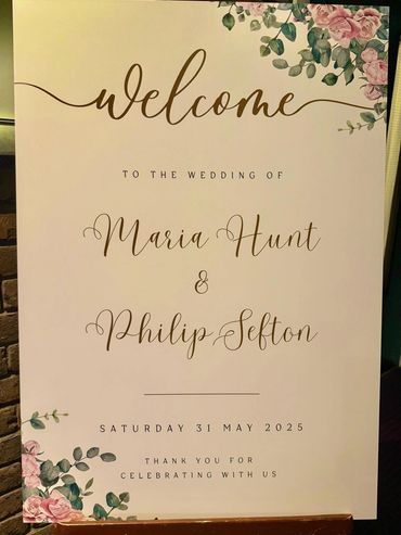 Maria and Phil are big Star Wars fans and enjoyed an eclectic mix of music including the Star Wars Theme alongside some more traditional favourites such as Starships Nothing’s Gonna Stop Us Now, A Thousand Years and All of Me by John Legend. We particularly loved the Star Wars accessories including the Millennium Falcon board and Grogu on the cake! We then relocated to the outside terrace using our battery power where we played for the drinks reception. Maria and Phil very kindly provided us with a delicious chicken pie and chips during the speeches before we took our places again for the Wedding Breakfast where we were happy to accommodate lots of requests!