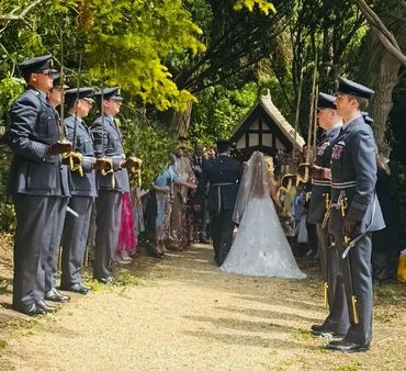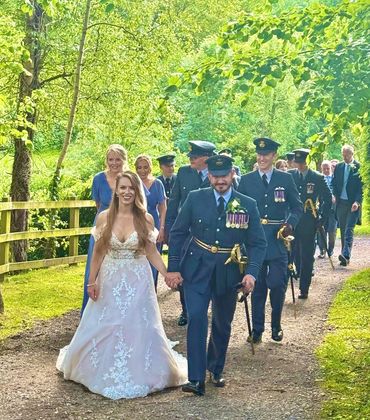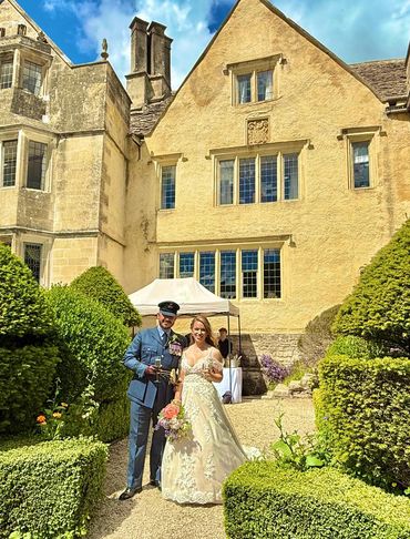 Fantastic With Fizz had the honour of being the daytime wedding musicians for Lauren and Damien at Owlpen Manor. Lauren looked beautifully radiant as she walked down the aisle to meet her Flight Lieutenant fiancé Damien who was an imposing figure with his uniformed groomsmen to the classical sounds of Canon in D. Their musical taste was broad with requests for JSBach to Bridgerton to Einaudi with some Game of Thrones and Harry Potter thrown in and we were more than happy to accommodate along with one of our favourites, Toda va estar bien which means “everything is going to be great!” which is beautiful, underrated song for a wedding in case anyone wants to check it out!