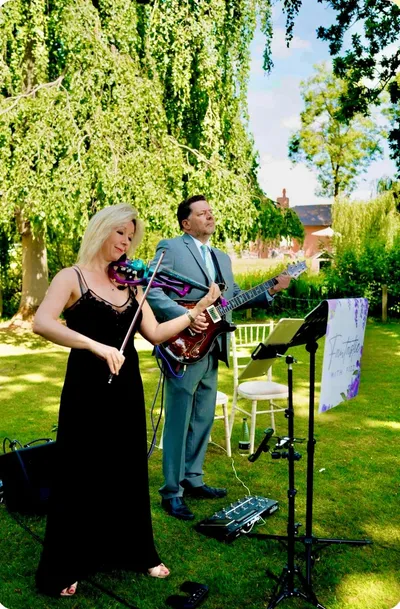 We will organise all the necessary musical and technical elements and will liaise with the venue for the best place to play leaving you worry-free to enjoy our performance. We don’t need a power supply or huge space as there are only two of us and a speaker meaning both indoor and outdoor performances are possible. Our only proviso is that we need shelter if it is raining as our instruments are valuable.