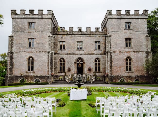 The castle’s exterior is a photographer’s dream, featuring majestic turrets, a 15-acre serpentine lake, and a picturesque jetty. Inside, the Oak Room—with its ornate wood panelling—provides a regal setting for civil ceremonies, while the estate ensures exclusivity by hosting only one wedding per day. Spaces available include: