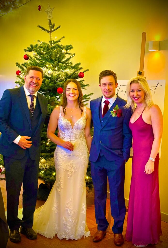 The Christmas vibes were in full force at the beautifully festive wedding of Laura and Wayne at Clearwell Castle! After playing a guest arrival set, Laura entered, looking sparkly and stunning to Ed Sheeran’s Joker and the Queen which set the tone for a ceremony that pulled at everyone’s heartstrings. During the Register we played A SKy Full of Stars before playing the happy couple out to You’ve got the love. Then it was all change for an upbeat Sax set for the drinks reception, where we had everyone dancing along with everything from Shania’s Man I Feel Like A Woman to Robbie’s Angels! Then it was back to violin for the Wedding Breakfast where we played a classy Bridgerton set along with some festive favourites! Thank you Wayne and Laura for choosing Fantastic With Fizz to be part of your special day! Sending loads of love for you for the future!