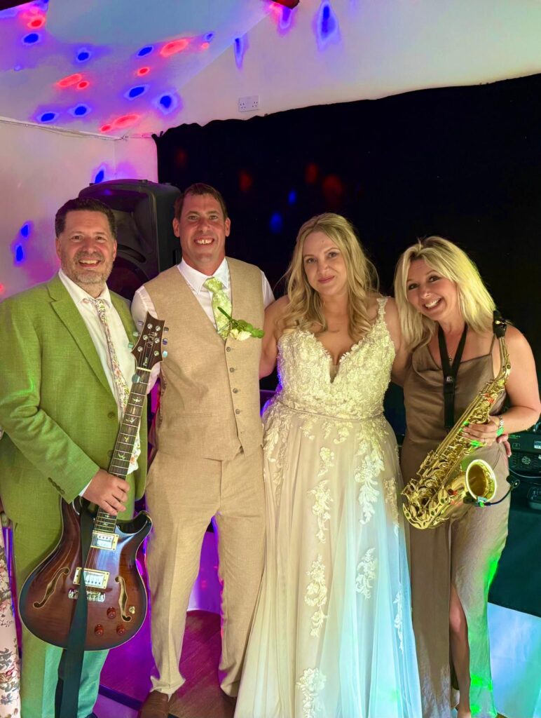 Fantastic with Fizz we’re delighted to provide a Platinum all day music package for the beautiful wedding of Caroline and and Joe at Minstrel Court in Cambridge! Caroline walked in over a romantic bridge over the lake to Millionaire by Chris Stapleton. Caroline and Joe are big country fans and we played a lot of country tunes throughout the day, including Tennessee Whisky as the Exit Song. Caroline wanted to mix up the vibe during the drinks reception so we did some chill tunes on sax before relocating inside for the Wedding Breakfast where we did a Bridgerton set. Caroline and Joe gave us a lovely hog roast to enjoy during our break, before we serenaded them for their First Dance which was Stand By Me on sax. We had a wonderful time and thoroughly enjoyed being part of their special day! Congrats, guys xxx