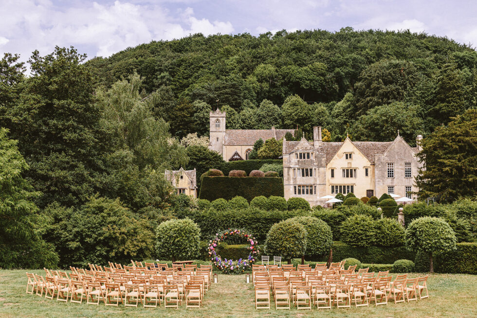 With their centuries-old clipped topiary and box parterres, the gardens provide staggeringly beautiful views across to Owlpen Manor and Holy Cross church, a truly unique spot for your special occasion.