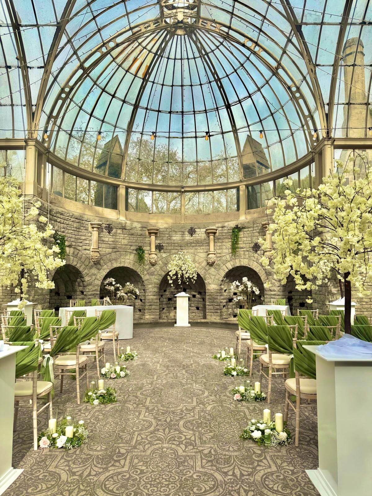 The estate provides a variety of settings for different stages of the celebration, from the ornate wood-paneled reception rooms to the expansive outdoor terraces that overlook the manicured gardens and arboretum. The interior decor honors the heritage of the building while ensuring contemporary comfort for guests. With its grand staircase and intricate stone carvings, the house itself serves as a built-in gallery for photography. Beyond the aesthetics, the venue is known for its comprehensive service, offering on-site accommodations that allow the wedding party to transition seamlessly from the ceremony to a restful stay. It remains a premier choice for those desiring a sophisticated countryside retreat with significant historical character.
